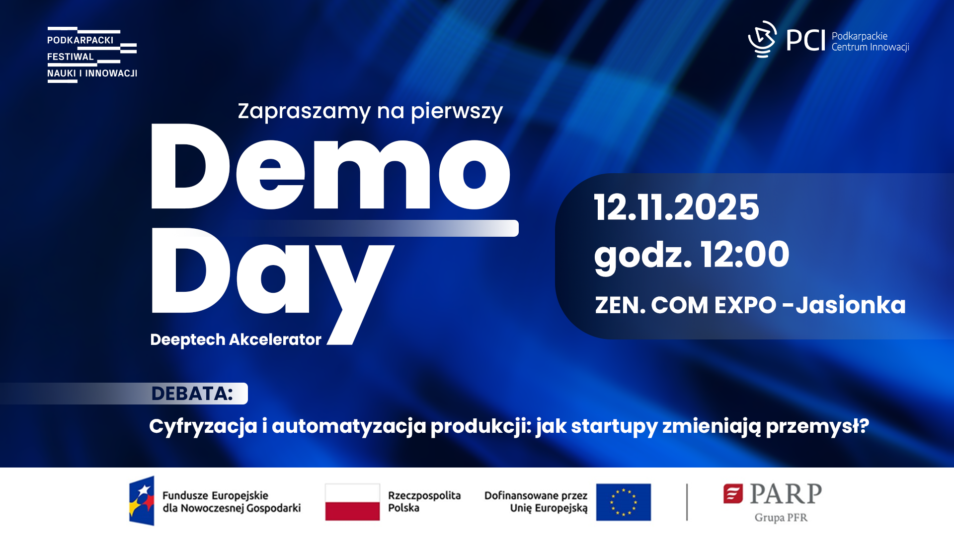 W imieniu naszego Partnera – Podkarpackie Centrum Innowacji, zapraszamy do udziału w finałowym wydarzeniu Demo Day #1, kończącym I rundę akceleracji w programie – „Rozwój startupów poprzez Deeptech Akcelerator”.